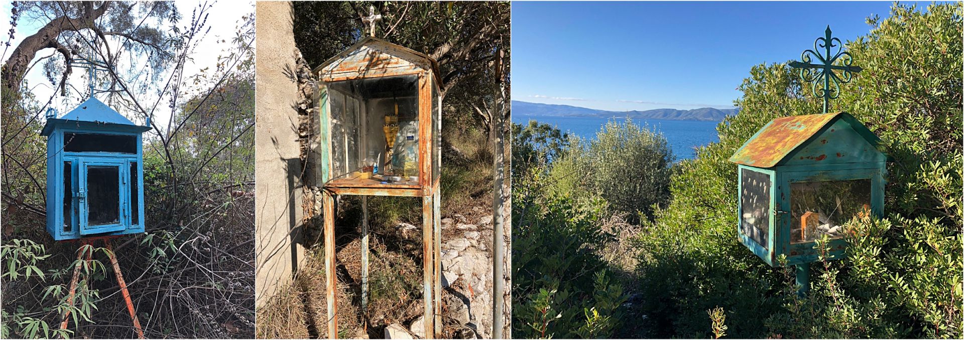 On Monday we took on a cracking walk from Vasiliki through olive groves, scrumping oranges here and there, passing shrines, churches, and the occasional herd of goats and scraggy sheep.