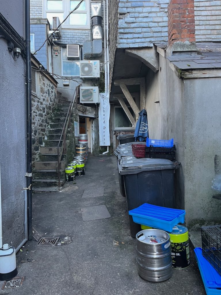 While the hordes flock to The Sloop I urge you to walk the other way and dive down a bin strewed alley to seek out the hidden Pilchard Press. Great ales and several cider barrels, no food, but if you’re lucky there’ll be singing. On our Friday visit the excellent five piece Cork an Barbor were belting out Cornish favourites. The beer was good too.