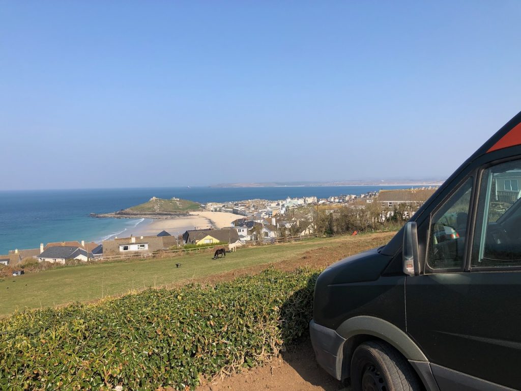 13 miles. Probably 40 minutes. Some reversing. Some narrow squeezes. All too soon it’s over and the road descends into the winding streets of Cornwall’s tourist mecca, St Ives.