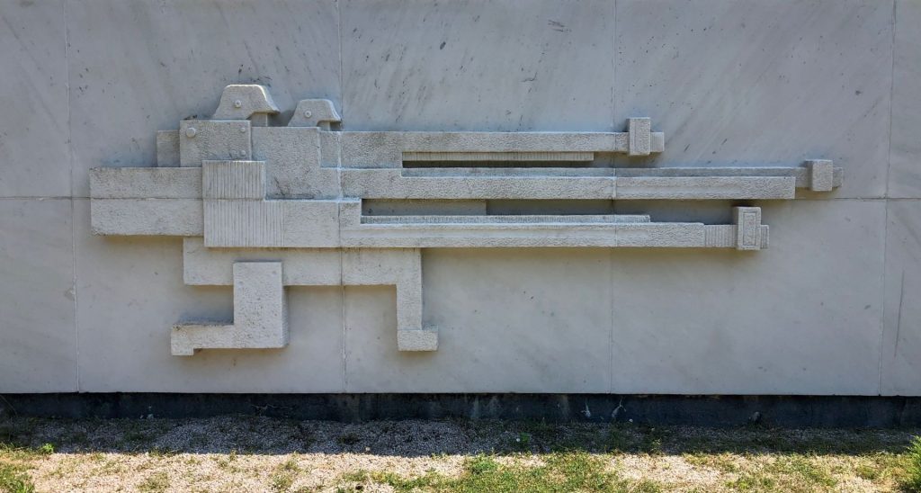 Our first was on the Bubanj Hill above Niš. Here some 10,000 citizens were slaughtered by the Axis forces. The three incredibly huge fists symbolise the victims, men, women and children. Elsewhere a marble wall represents the German gunners, enslaved peoples, those shot dead, survivors rising up as the defiant fists. It’s powerful.