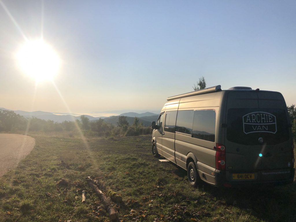 The tarmac ended within a few hundred metres. The remaining road, although good enough for Google, and ideal for little Billy, our Greek Fiat Panda, wasn’t good enough for ArchieVan.