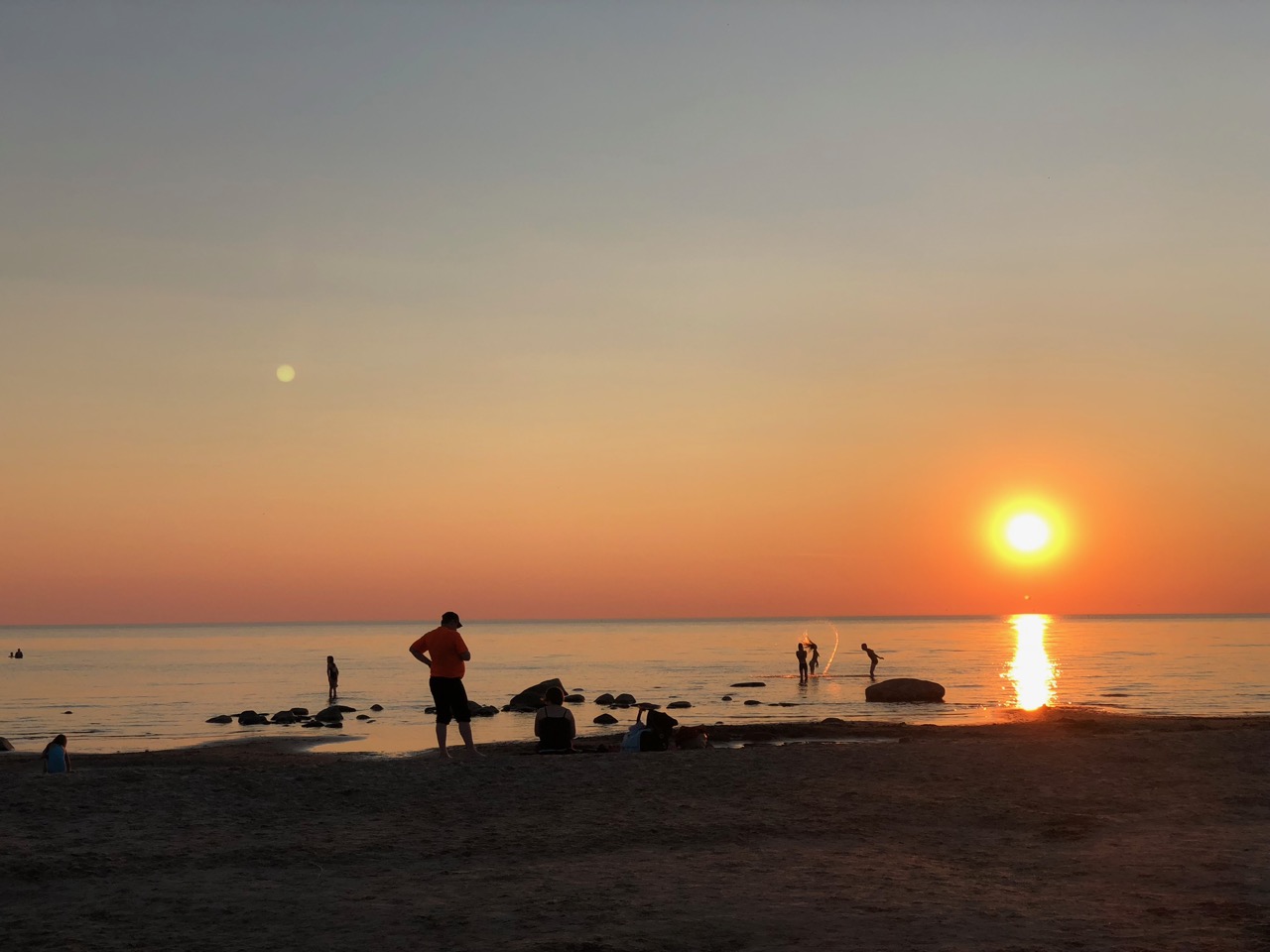 We pull into a little beach car park at Tauvo, about 80kms from Oulu and need to get into the water to cool off. After 50 metres walking straight out to sea the water’s barely over our ankles and people in the far distance are standing too.