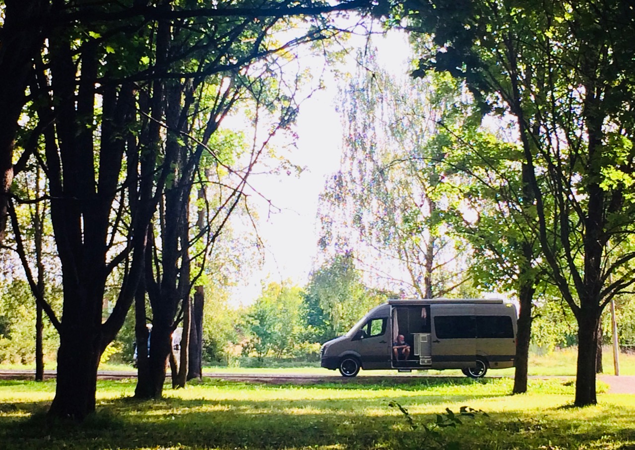 It’s a hot day after a few cooler ones, the roads are pretty awful with deep ruts that pull ArchieVan every which way. We frequently have to dive for the ditch as oncoming trucks veer over the white line. And after a hundred or so miles we arrive knackered.