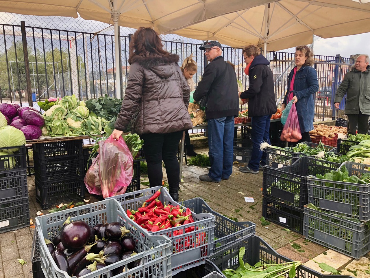 We’re a bit too conscientious to go on another raid and so we headed to Lefkas for the Saturday morning fruit and veg market.