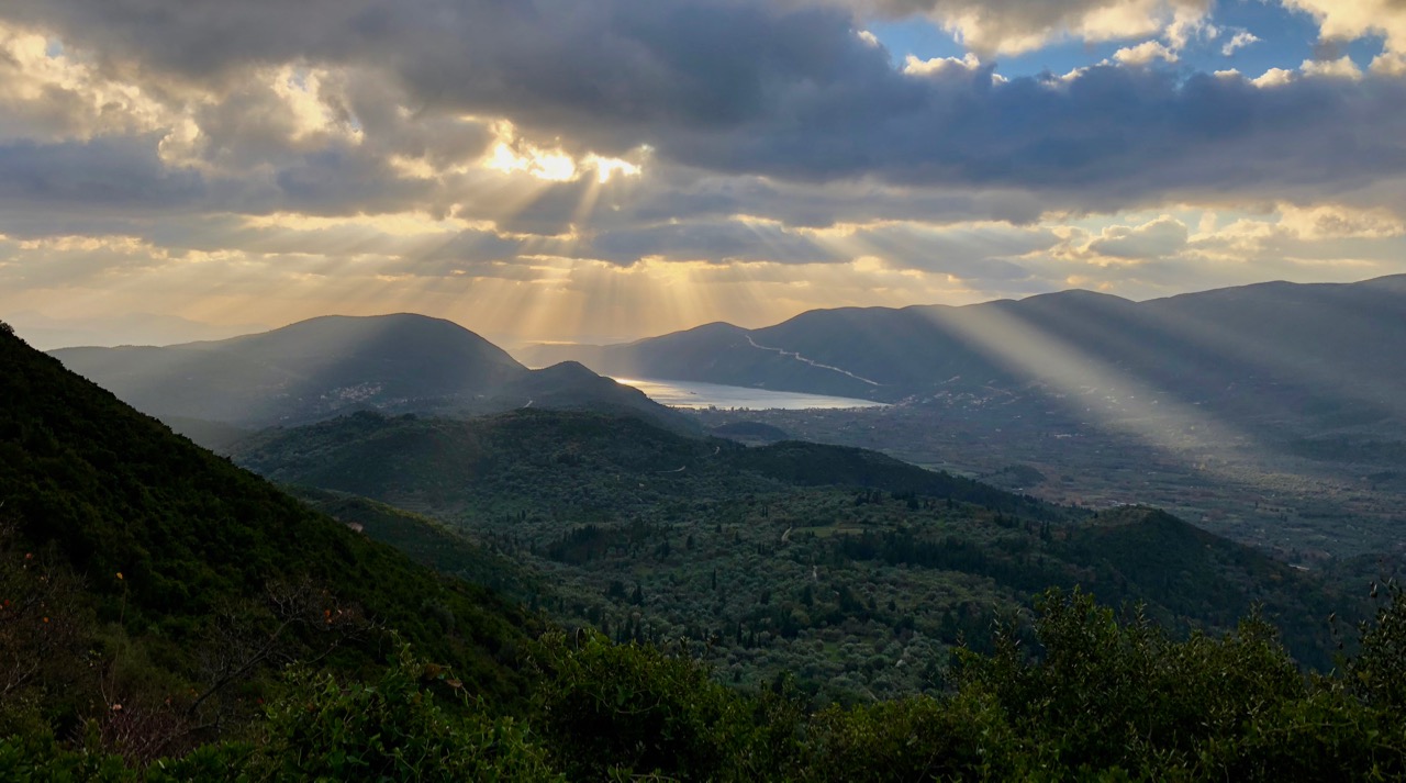 I’d still like to tackle the long route, but on Sunday an hour in each direction was enough to delight. Shafts of late afternoon light were bouncing off the bay at Vasiliki creating a view that it would take much more than my phone camera to best capture. In just an hour I had views over the islands of Kefalonia, Ithica, Kambos, Meganissi, Kalamos, Kastros, the mainland and probably more.