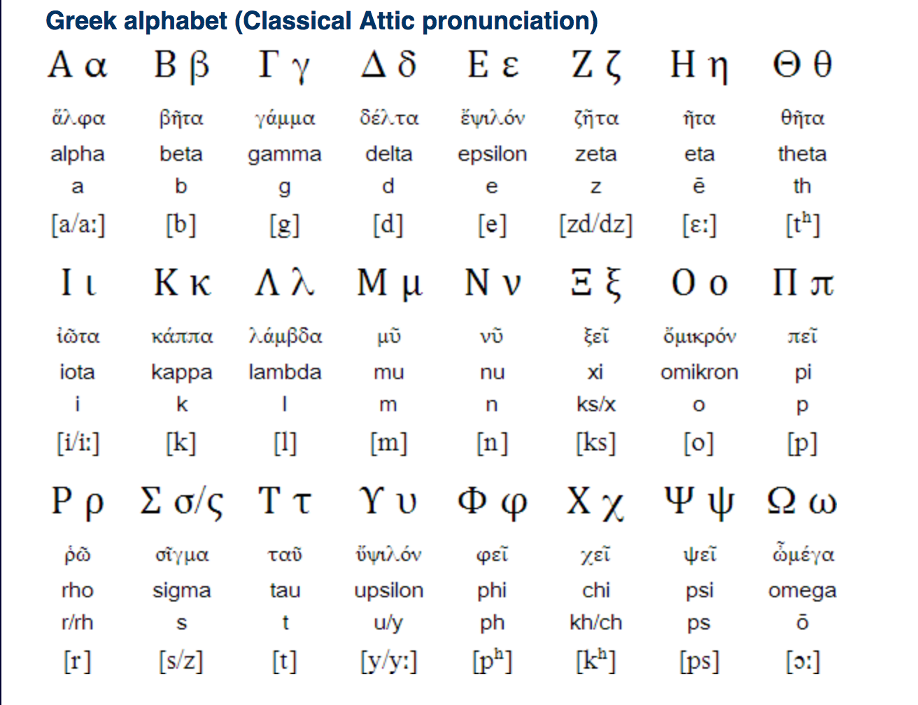 Much of the alphabet is recognisable from maths lessons all those decades ago, but the shapes don’t correspond to letters and sounds as we know them from the Roman alphabet.