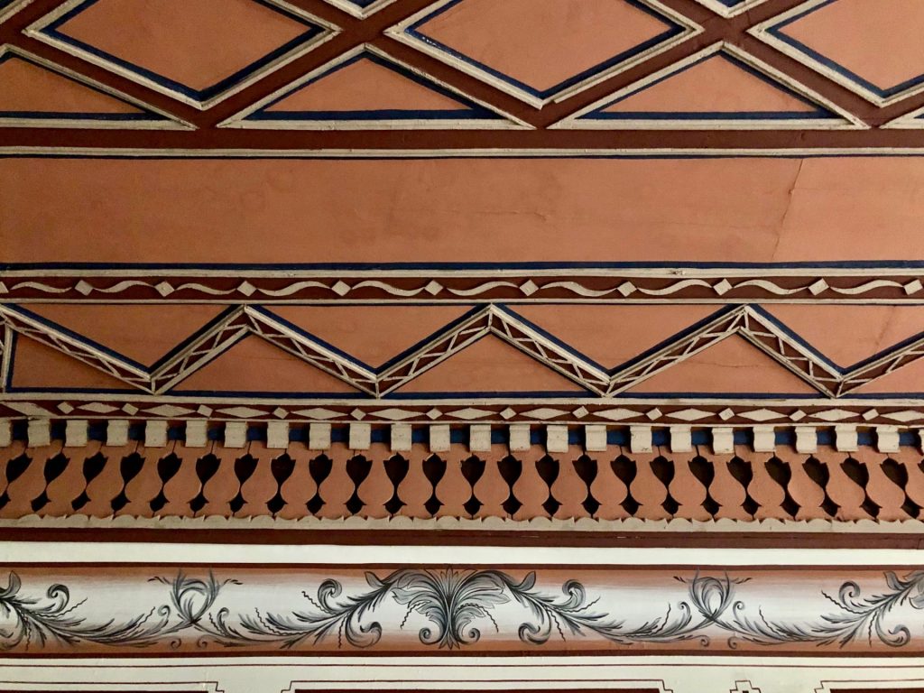 The old trader’s house is rich with wood panelling and period furniture. Our room had the most outrageous ceiling and cornicing.