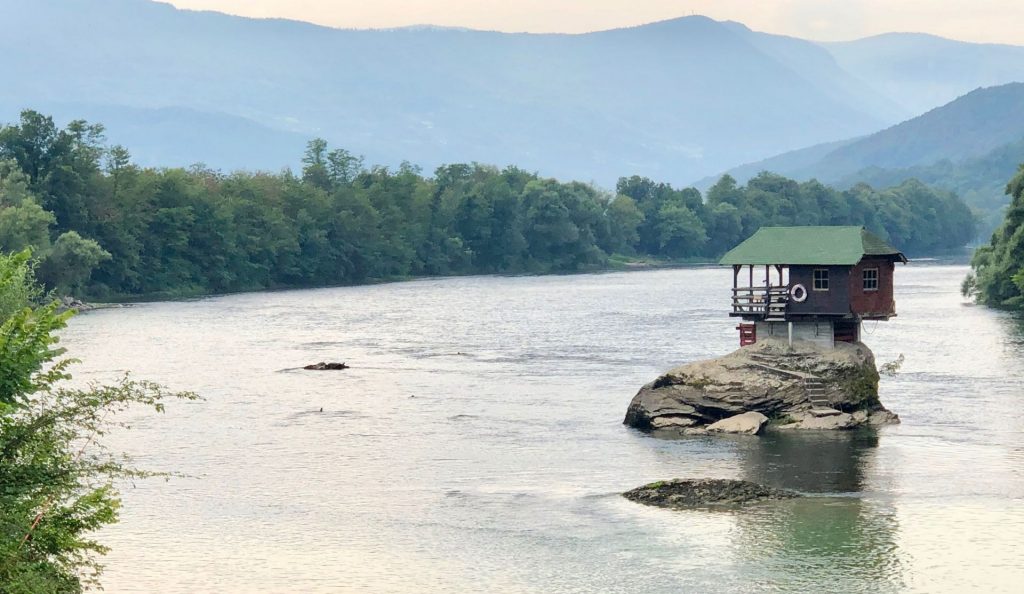 Bajina Basta is a town on the Drinja, the river that forms much of the border with Bosnia to the west. The river house, built on an island dropped by a giant a while back who wanted to keep his precious horse’s hooves dry on their hop across the river, is reconstructed every time the Drinja washes it away. It’s a pretty thing, but perhaps not deserving the adoration it receives.