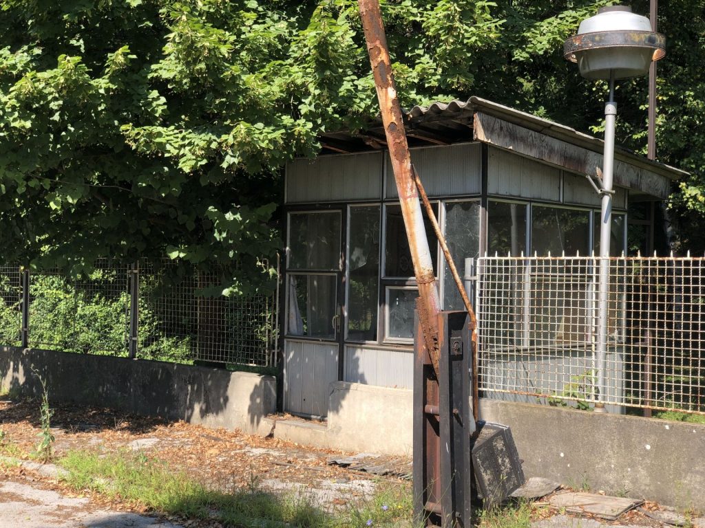 Small bridges, kiosk stores, fences, gates, benches, check-points. All metal.