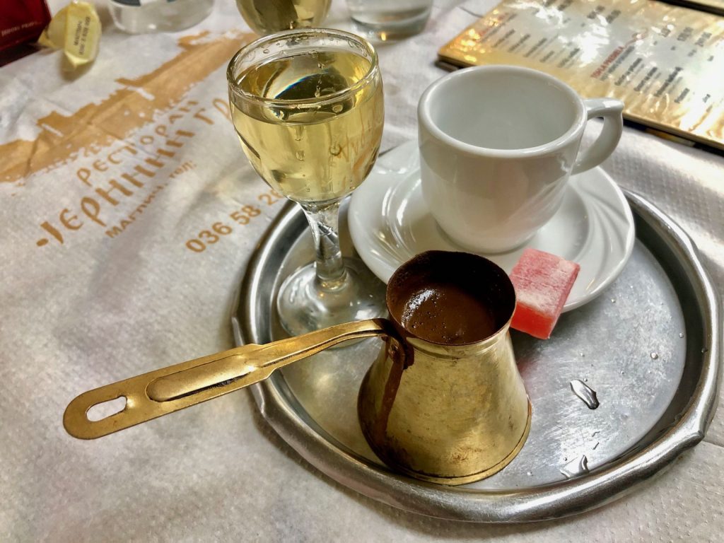 Emilija and Radko welcome us with Turkish coffee and Slivovitz. Conversation is backed by Google and the similarity of many words to their Greek equivalent.
